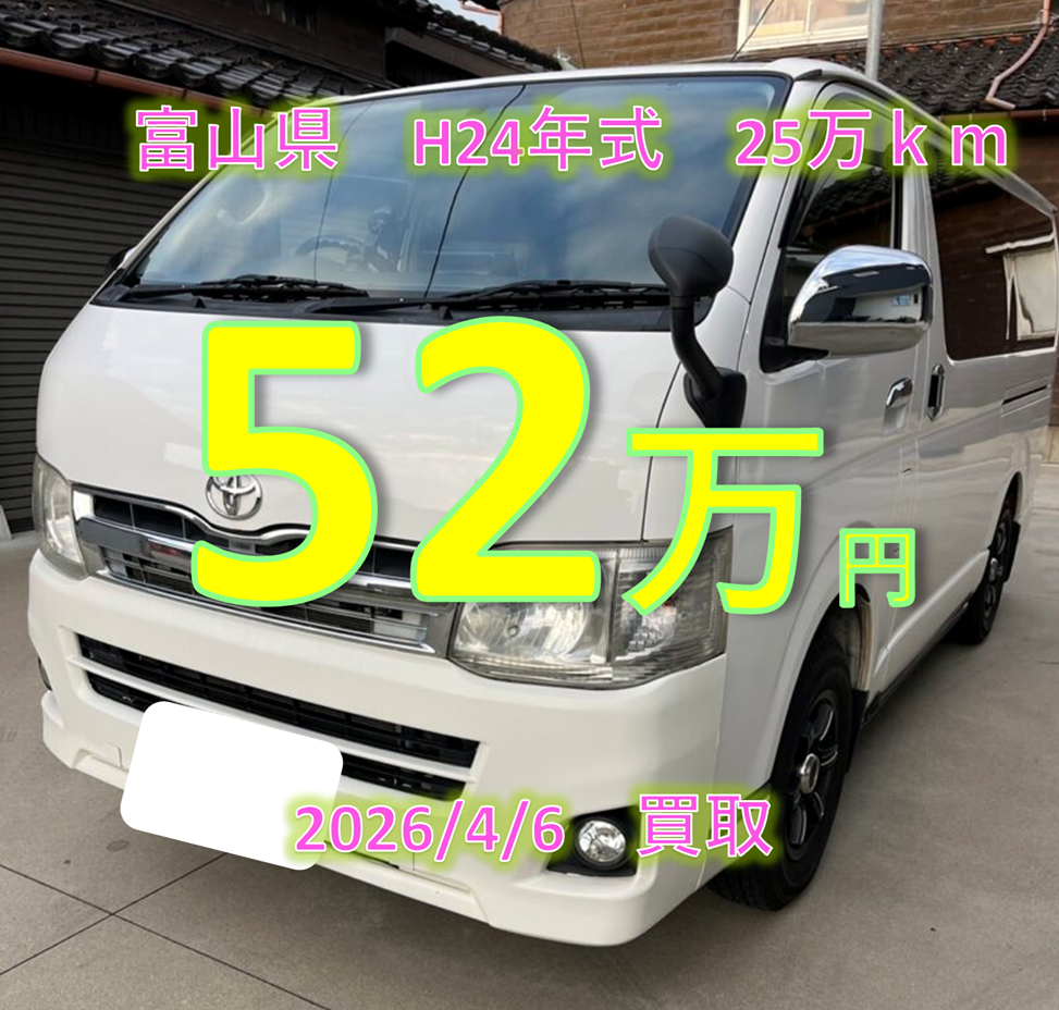 【買取事例】平成24年式LDF-KDH206V富山県 2026年4月13日 ツイート シェア はてブ 送る Pocket 車名 ハイエースバン 年式 平成24年06月 走行距離 252419km 型式 LDF-KDH206V グレード DX 都道府県 富山県 買取価格 520000円 類似のハイエース買取事例 【買取事例】平成24年式LDF-KDH206V岐阜県 ハイエースの概算査定金額をお知りになりたい場合はこちらから お名前 (必須) 地域 (必須) 例:大阪府 吹田市 メールアドレス (必須) 車種名 (必須) 選択してください —以下から選択してください—ハイエースバンレジアスエースバンハイエースワゴンレジアス(or ハイエースレジアス)その他 グレード(バンの場合) (必須)選択してください グレード(バンの場合) (必須)選択してください —以下から選択してください—スーパーGLDXーGLパッケージDX グレード(ワゴンの場合) (必須)選択してください —以下から選択してください—グランドキャビンGLDXリビングサルーンEXスーパーカスタムリミテッドスーパーカスタム(G)カスタムその他不明 型式がわかりますか? (必須) 選択してください —以下から選択してください—分かる今は分からない 型式(必須) 燃料の種類(必須) —以下から選択してください—ガソリンディーゼル 駆動方式(必須) —以下から選択してください—2WD4WD 年式(初年度登録)(必須) 例:H8年 走行距離 (必須) 例:約19万km 車検期限 (必須) 例:H28年9月 トランスミッション(必須) 選択してください —以下から選択してください—オートママニュアル スライドドアについて(必須) —以下から選択してください—わからない両側スライドドア(5ドア)片側スライドドア(4ドア) 荷室のタイヤハウスについて(必須) —以下から選択してください—わからないタイヤハウス有タイヤハウス無し(ジャストロー) 車体色 (必須) 例:白 車の状態 その他 電話番号(メールが届かない場合があります。なるべく書いてください) 当社をお知りになったきっかけ(必須) 選択してください —以下から選択してください—店舗の看板ラジオCM知人の紹介以前弊社で車を売却したことがあるWEBサイト(Google検索)WEBサイト(Yahoo検索)Youtube(ショート)SNS(instagram)SNS(twitter)Tiktokその他 上記の内容で申し込む(必須) Δ