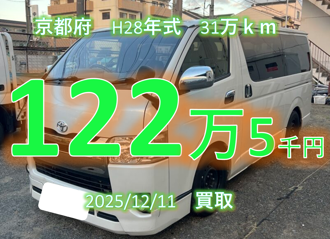 【買取事例】平成28年式QDF-KDH201V改京都市 2026年1月8日 ツイート シェア はてブ 送る Pocket 車名 ハイエースバン 年式 平成28年03月 走行距離 309538km 型式 QDF-KDH201V改 グレード スーパーGL ダークプライム 都道府県 京都市 買取価格 1225000円 類似のハイエース買取事例 ハイエースの概算査定金額をお知りになりたい場合はこちらから お名前 (必須) 地域 (必須) 例:大阪府 吹田市 メールアドレス (必須) 車種名 (必須) 選択してください —以下から選択してください—ハイエースバンレジアスエースバンハイエースワゴンレジアス(or ハイエースレジアス)その他 グレード(バンの場合) (必須)選択してください グレード(バンの場合) (必須)選択してください —以下から選択してください—スーパーGLDXーGLパッケージDX グレード(ワゴンの場合) (必須)選択してください —以下から選択してください—グランドキャビンGLDXリビングサルーンEXスーパーカスタムリミテッドスーパーカスタム(G)カスタムその他不明 型式がわかりますか? (必須) 選択してください —以下から選択してください—分かる今は分からない 型式(必須) 燃料の種類(必須) —以下から選択してください—ガソリンディーゼル 駆動方式(必須) —以下から選択してください—2WD4WD 年式(初年度登録)(必須) 例:H8年 走行距離 (必須) 例:約19万km 車検期限 (必須) 例:H28年9月 トランスミッション(必須) 選択してください —以下から選択してください—オートママニュアル スライドドアについて(必須) —以下から選択してください—わからない両側スライドドア(5ドア)片側スライドドア(4ドア) 荷室のタイヤハウスについて(必須) —以下から選択してください—わからないタイヤハウス有タイヤハウス無し(ジャストロー) 車体色 (必須) 例:白 車の状態 その他 電話番号(メールが届かない場合があります。なるべく書いてください) 当社をお知りになったきっかけ(必須) 選択してください —以下から選択してください—店舗の看板ラジオCM知人の紹介以前弊社で車を売却したことがあるWEBサイト(Google検索)WEBサイト(Yahoo検索)Youtube(ショート)SNS(instagram)SNS(twitter)Tiktokその他 上記の内容で申し込む(必須) Δ